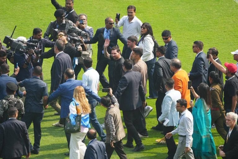 Des admirateurs venus voir en chair et en os leur idole Lionel Messi, qui a débuté en Inde une rare...